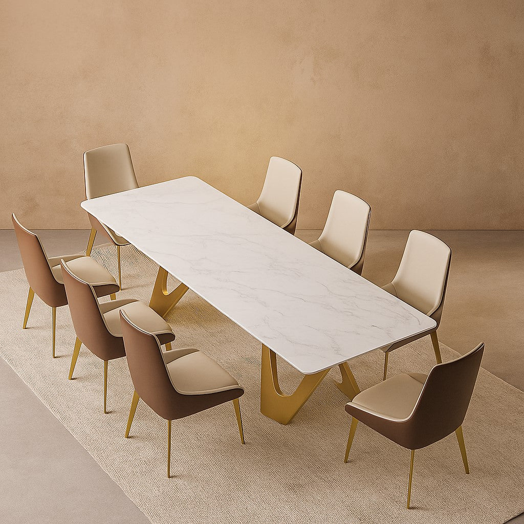 Transform your dining space with this luxury marble dining table, designed to blend timeless elegance with modern functionality. Featuring a premium white statuario marble top with natural veining, the table exudes sophistication and durability. The rectangular silhouette provides ample seating for family gatherings or dinner parties, while the stainless steel base in polished PVD gold finish adds a touch of opulence and long-lasting shine.