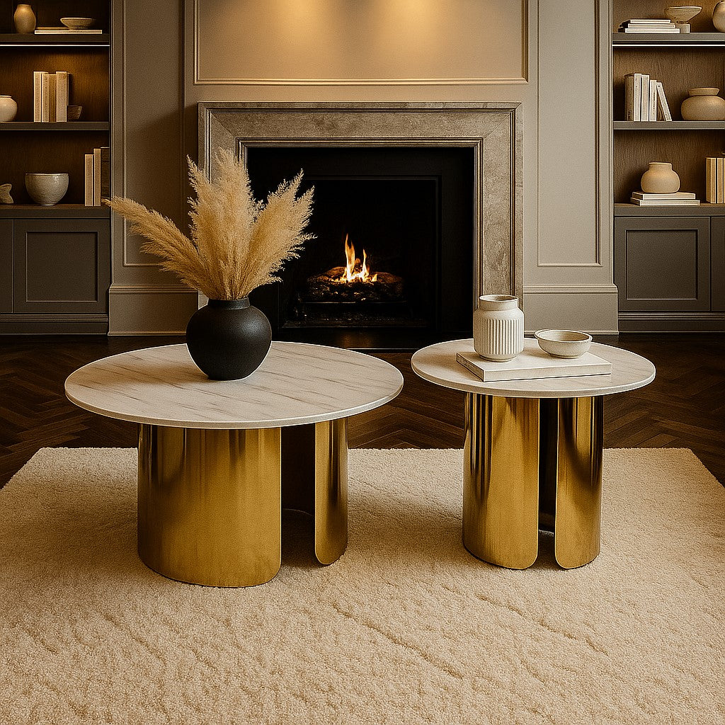 Luxury Round Nesting Table Set of 2 with Marble Top & Golden PVD Base